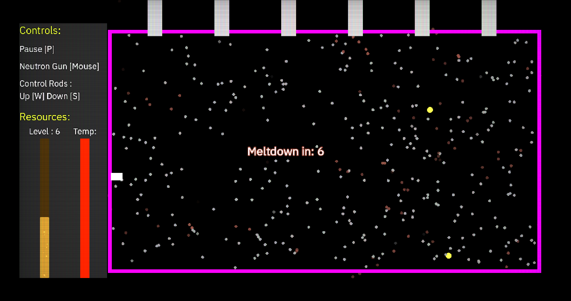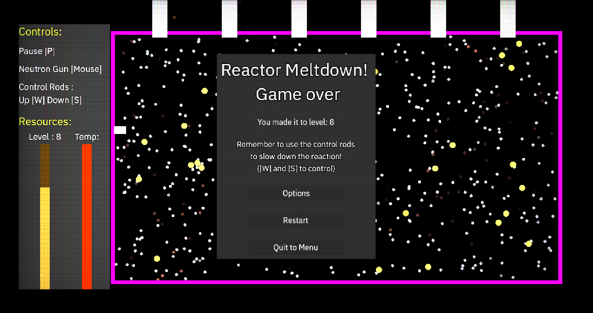 At some point, it's less "Lower the control rods to decrease the rate of reaction." and more "The control rods separate the reaction into chambers. Do not let them all activate at once." I ended up messing up and activating them all, but late enough in the game that I'm producing negligible heat. I have invented the cold nuke.